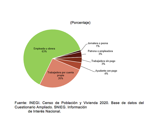 Respecto a la ocupación de las madres, se estimó que 63 por ciento reportaron ser empleadas u obreras, 26 por ciento trabajaban por cuenta propia, cuatro por ciento eran ayudantes con pago y únicamente tres por ciento reportaron ser empleadoras.